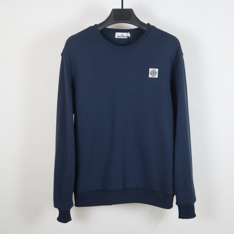 Лонгслив Stone Island темно-синего цвета с фирменным патчем бренда на рукаве. Теплый лонгслив прямого кроя с округлым вырезом горловины. Рукава, подол и горловина с трикотажными манжетами в рубчик для большего комфорта.