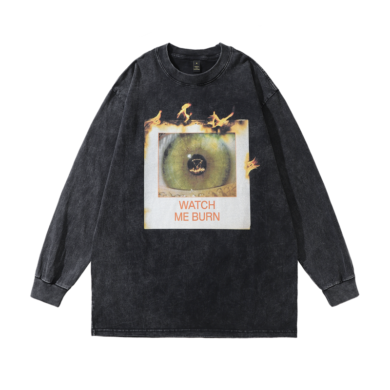 Черный хлопковый лонгслив TKPA с принтом и надписью WATCH ME BURN