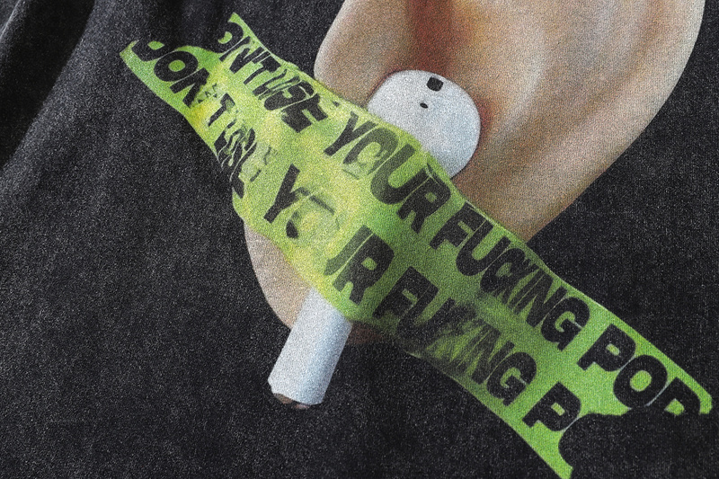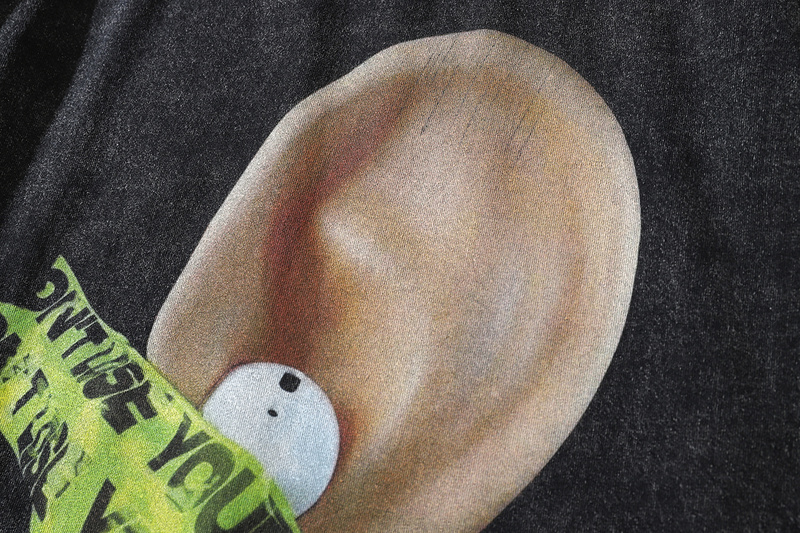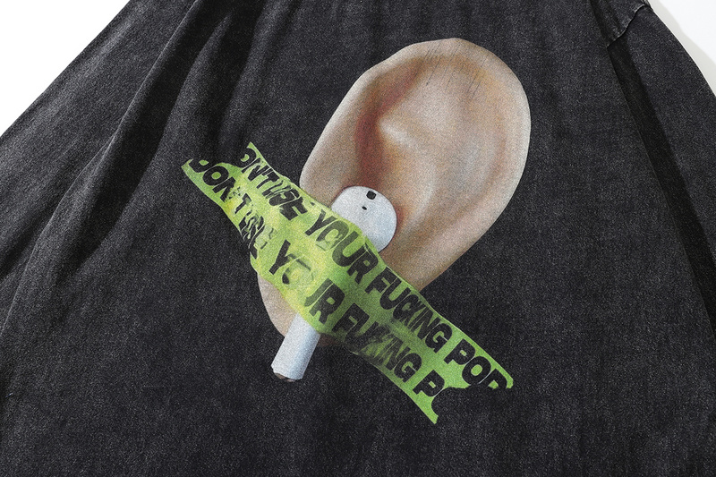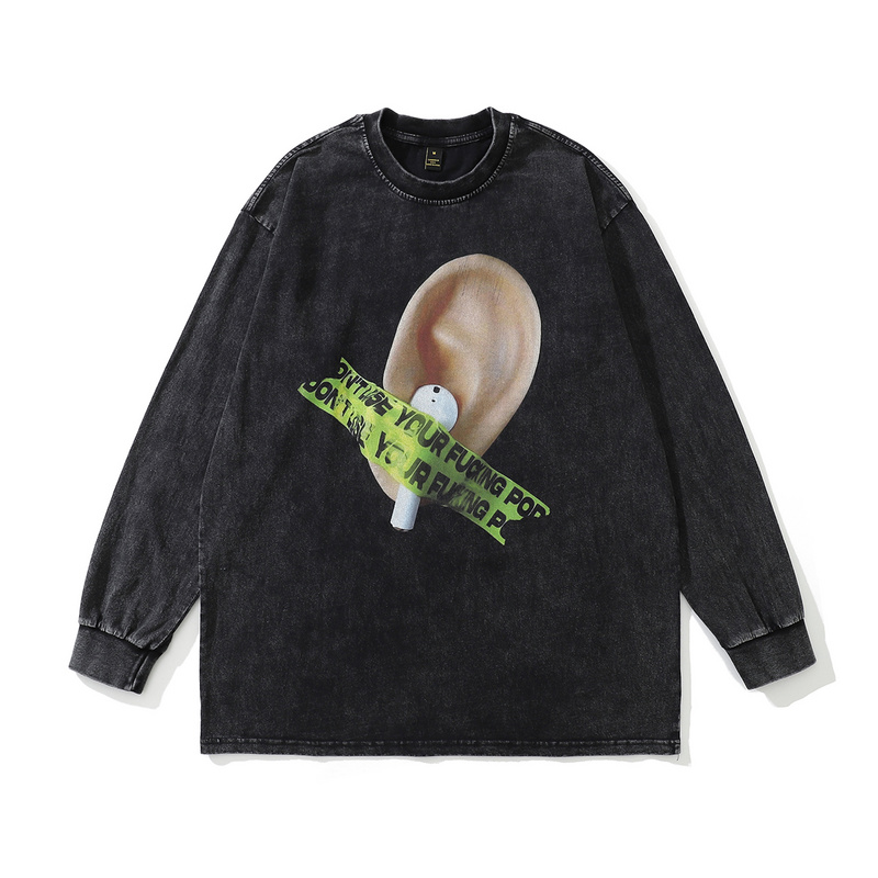 Черный хлопковый лонгслив бренда TKPA с принтом "Наушник в ухе"