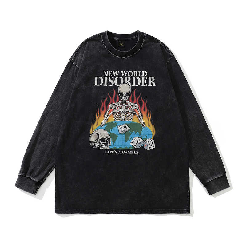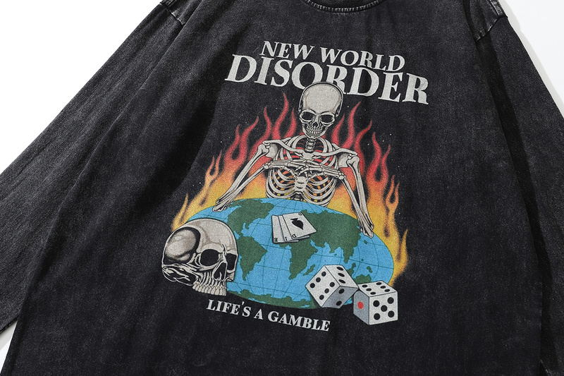 Лонгслив черный TKPA с рисунком скелета, игральными костями и картами