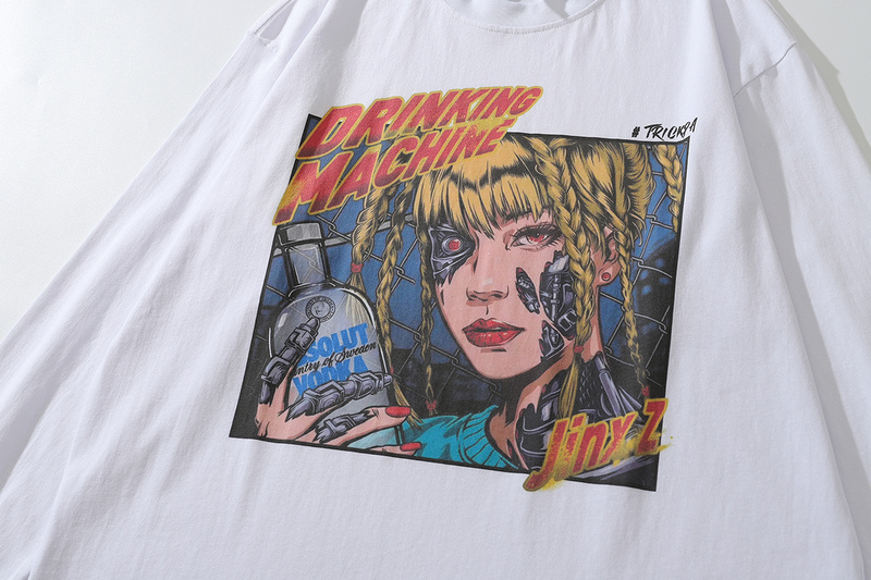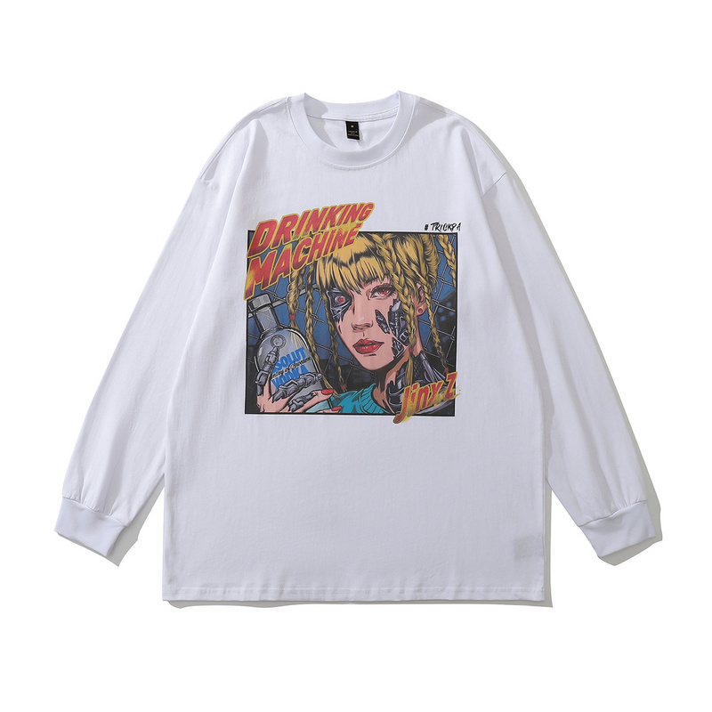 Белый хлопковый лонгслив TKPA с большим принтом девушки из комикса