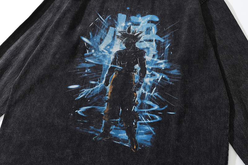Черный хлопковый лонгслив бренда TKPA с большим Аниме принтом