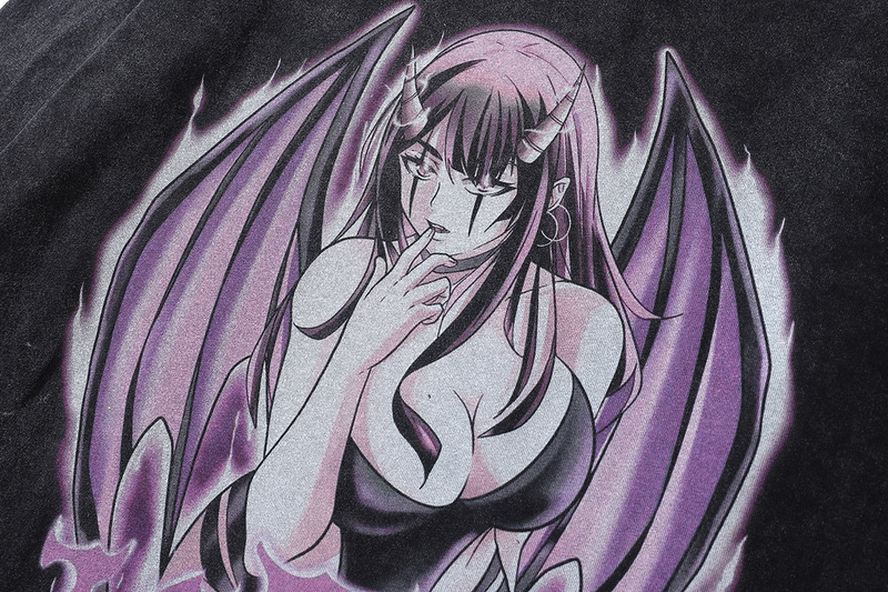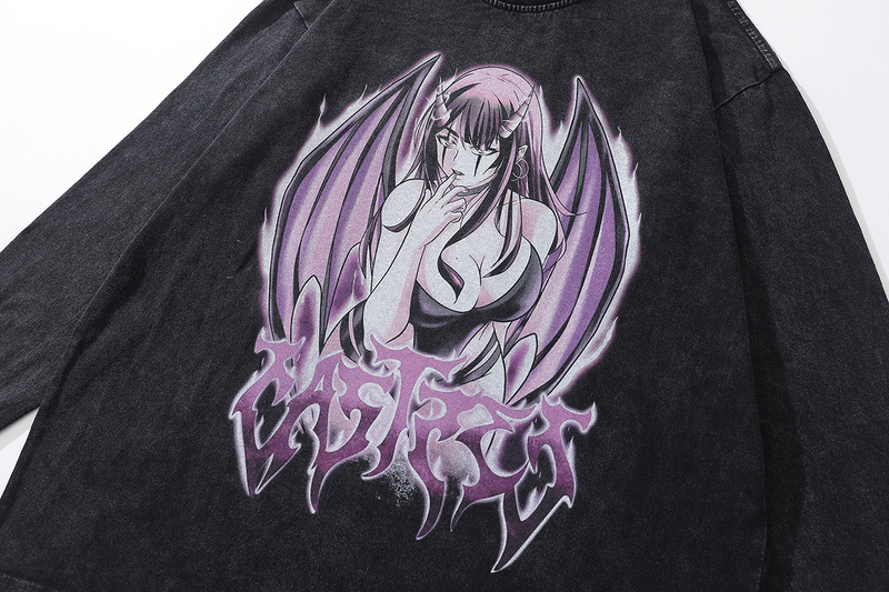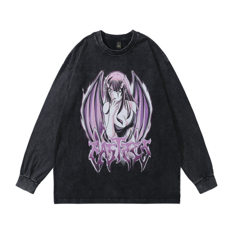 Лонгслив черный хлопковый бренда TKPA с аниме принтом "Ангел"