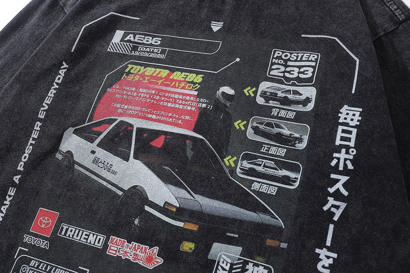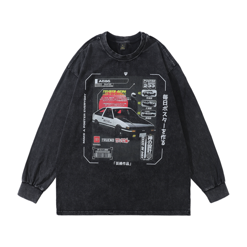 Черный хлопковый лонгслив TKPA с принтом постера автомобиля Toyota