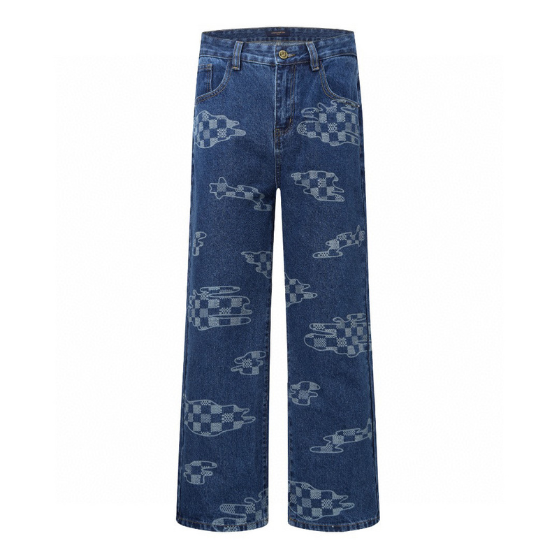 Louis Vuitton джинсы в синем цвете прямого кроя с принтом