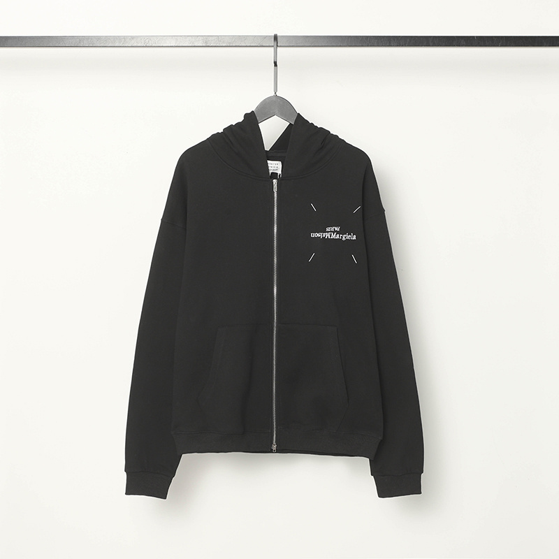 Maison Margiela зип худи на молнии в черном цвете с капюшоном