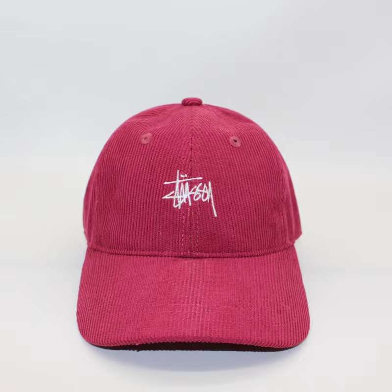 Малиновая вельветовая Stussy бейсболка с вышивкой бренда