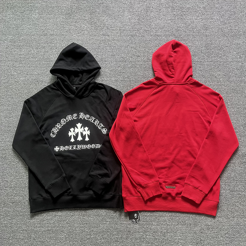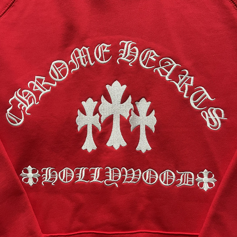 Малинового-цвета стильное с объёмным капюшоном худи Chrome Hearts