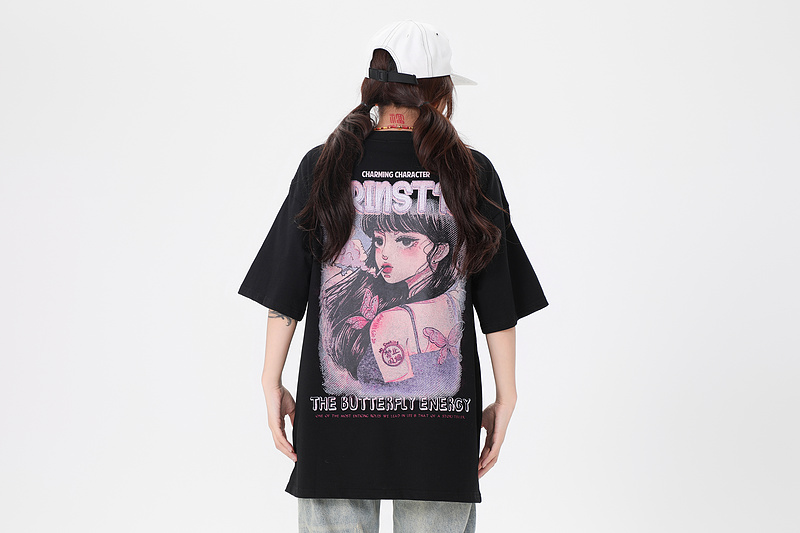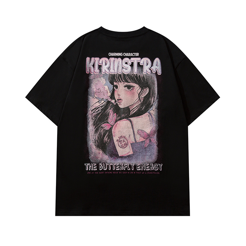 Модная черная KIRIN STRANGE футболка с "девушкой из аниме"