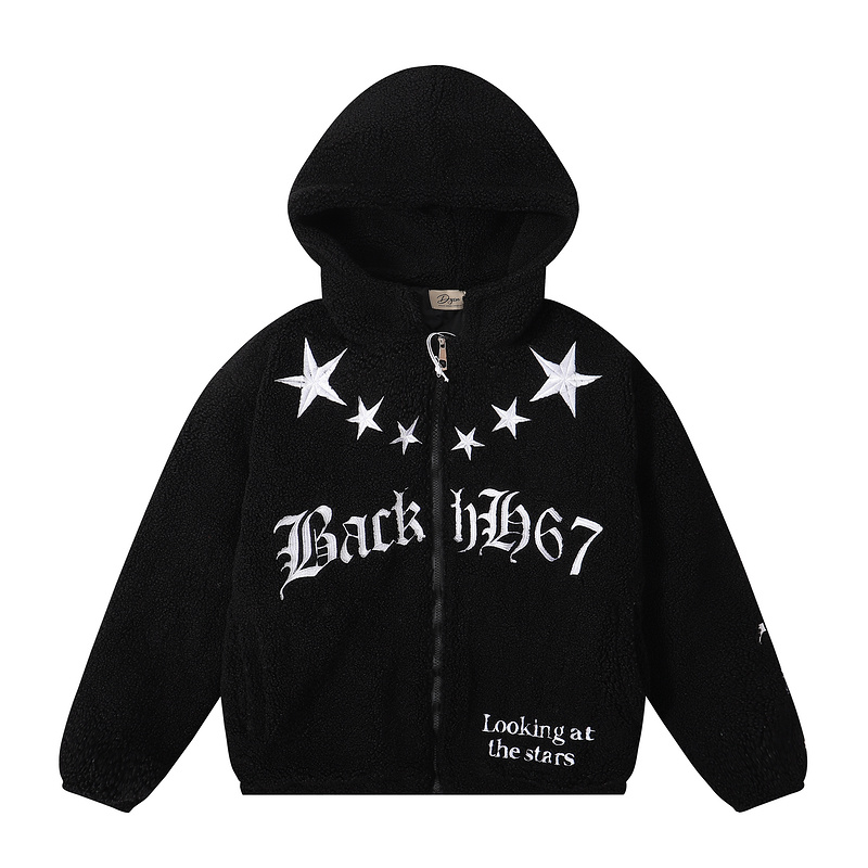 Модная куртка выполнена в черном цвете DYCN со звездами
