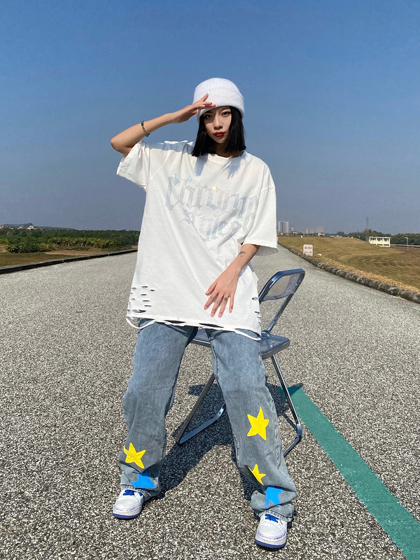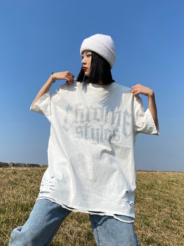 Модного фасона белая футболка KIRIN STRANGE со сверкающим лого