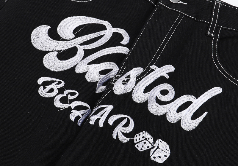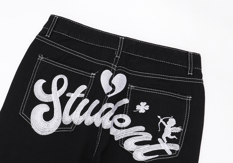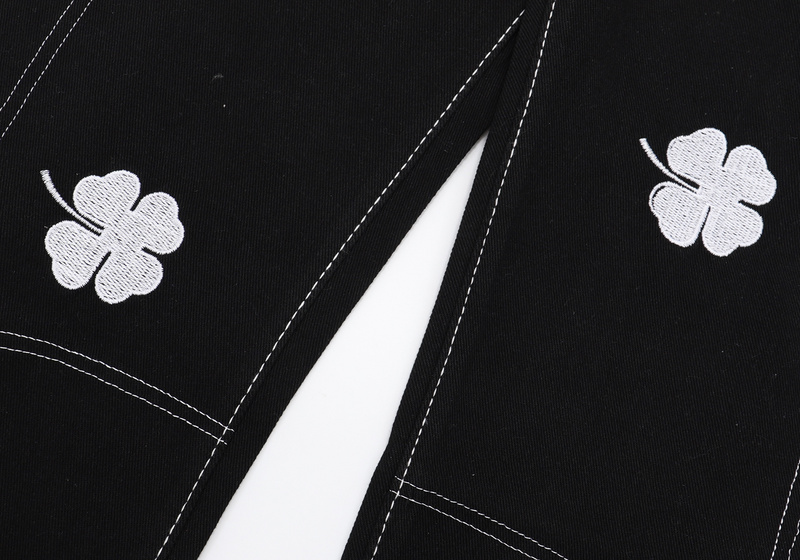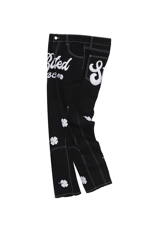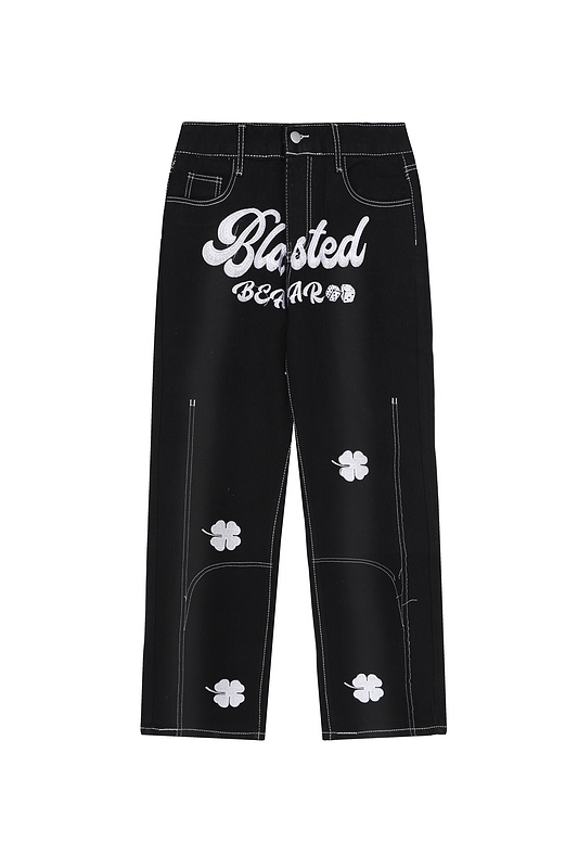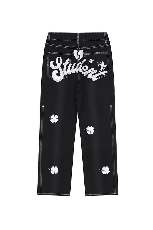 Модные черные джинсы с вышитым клевером и надписью DYCN