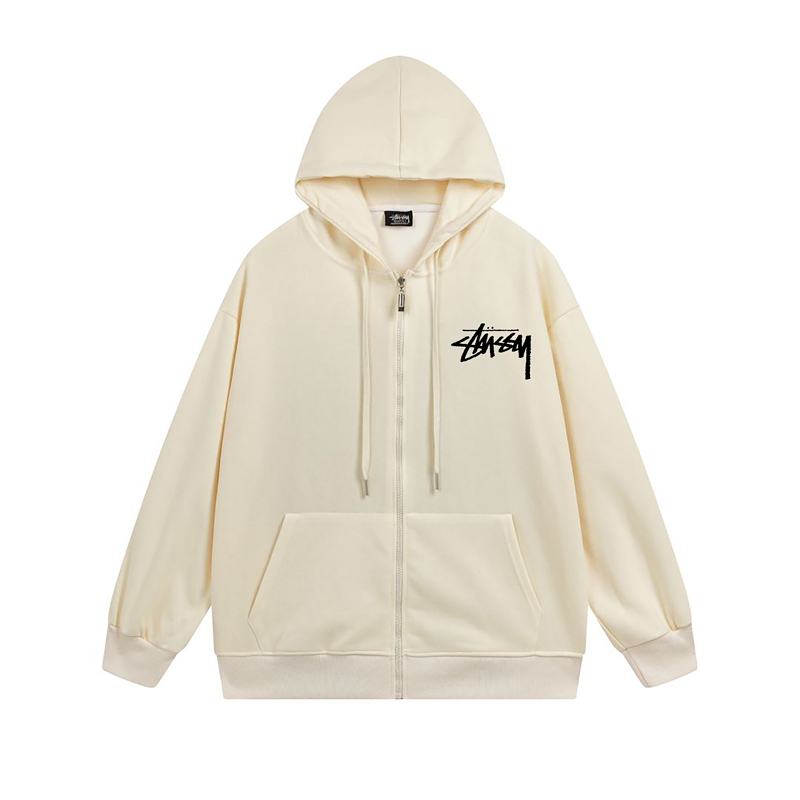 Молочное зип худи с рисунком "Тузы" Stussy запоминающееся