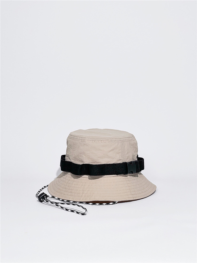 Молочного цвета панамка выполнена из 100% нейлона со шнурком