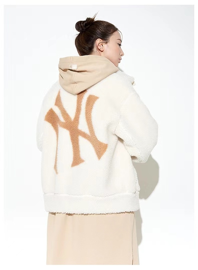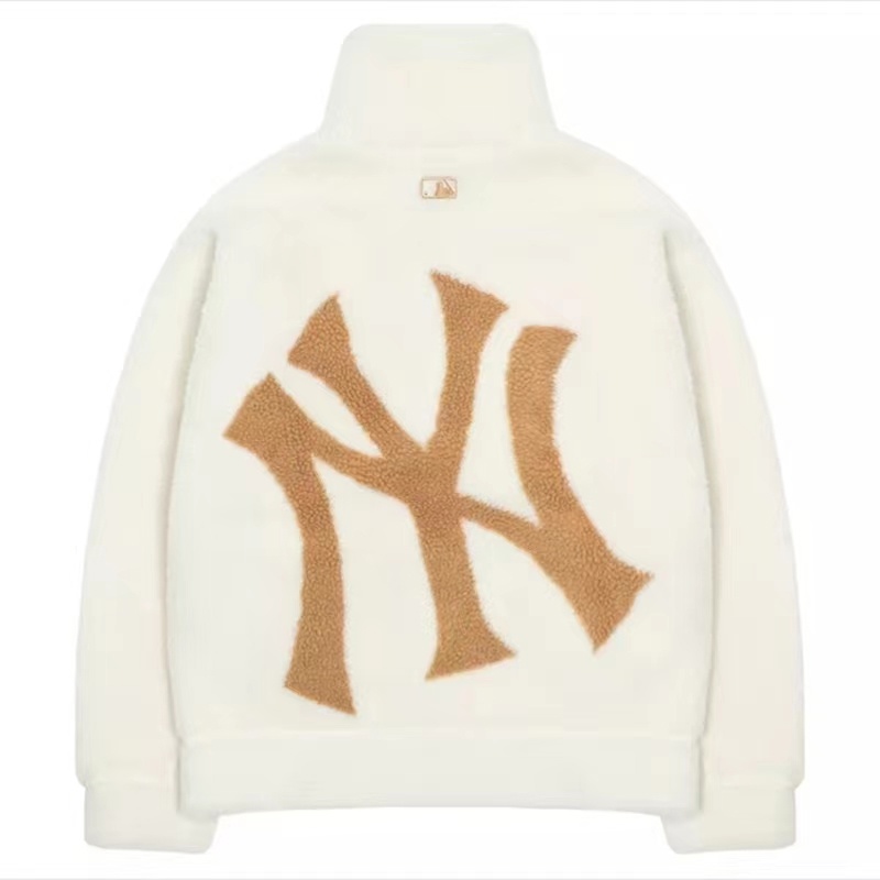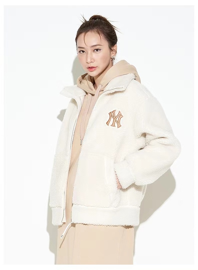 Молочного цвета шерпа-куртка на молнии и накладным карманом от MLB