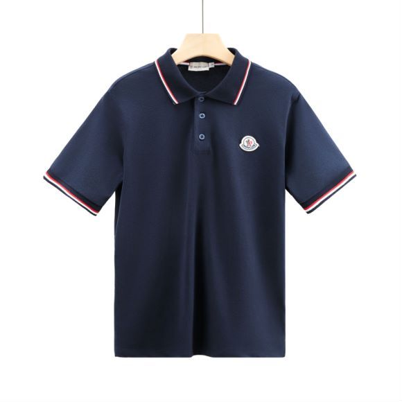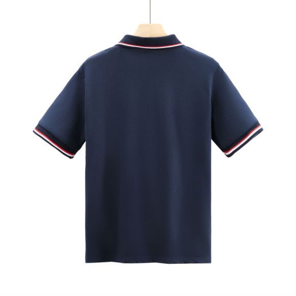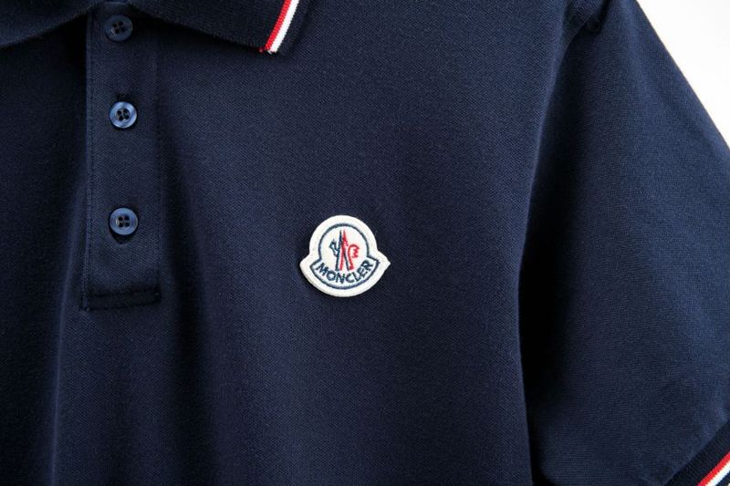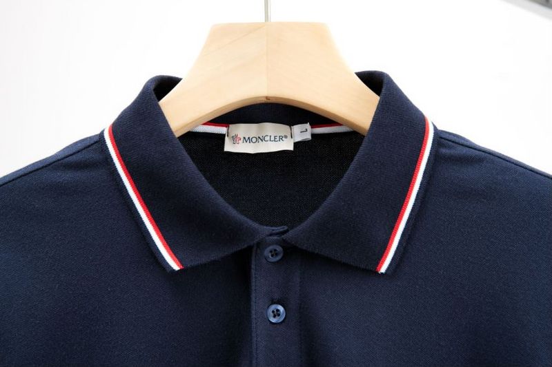 MONCLER темно-синее поло с цветными манжетами и стильным воротником