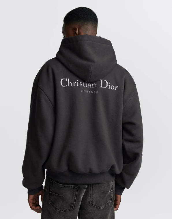 Тёмно-серое худи Christian Dior Couture с рванным эффектом