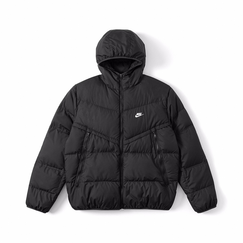 Мужской чёрный пуховик Nike с капюшоном и карманами на молнии