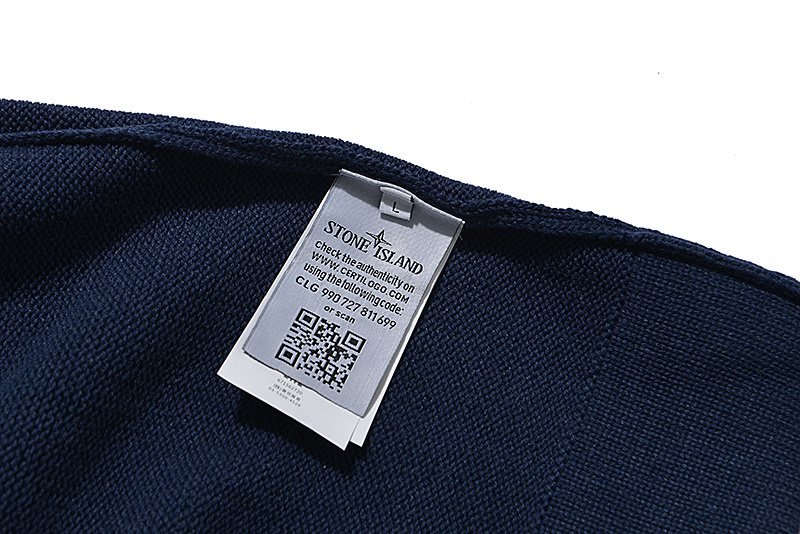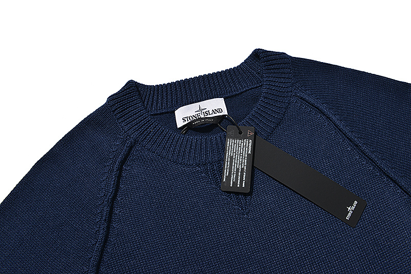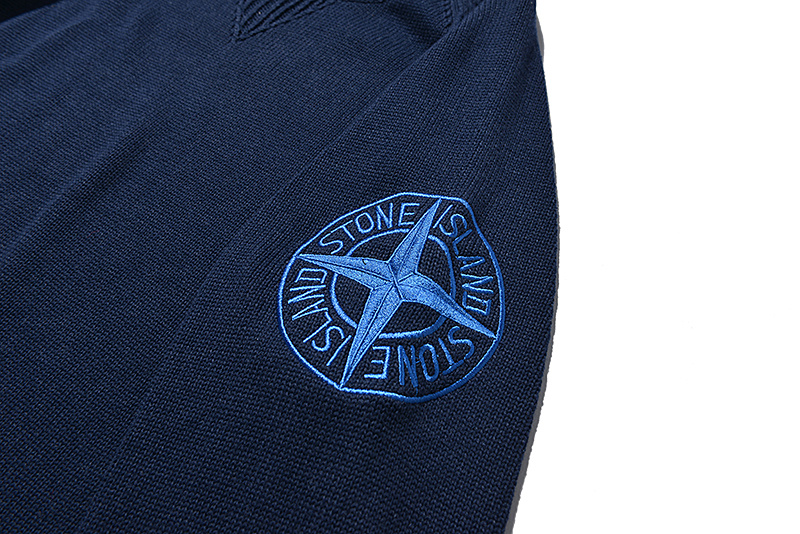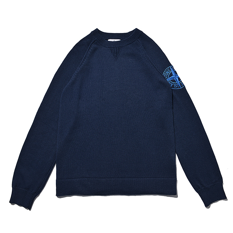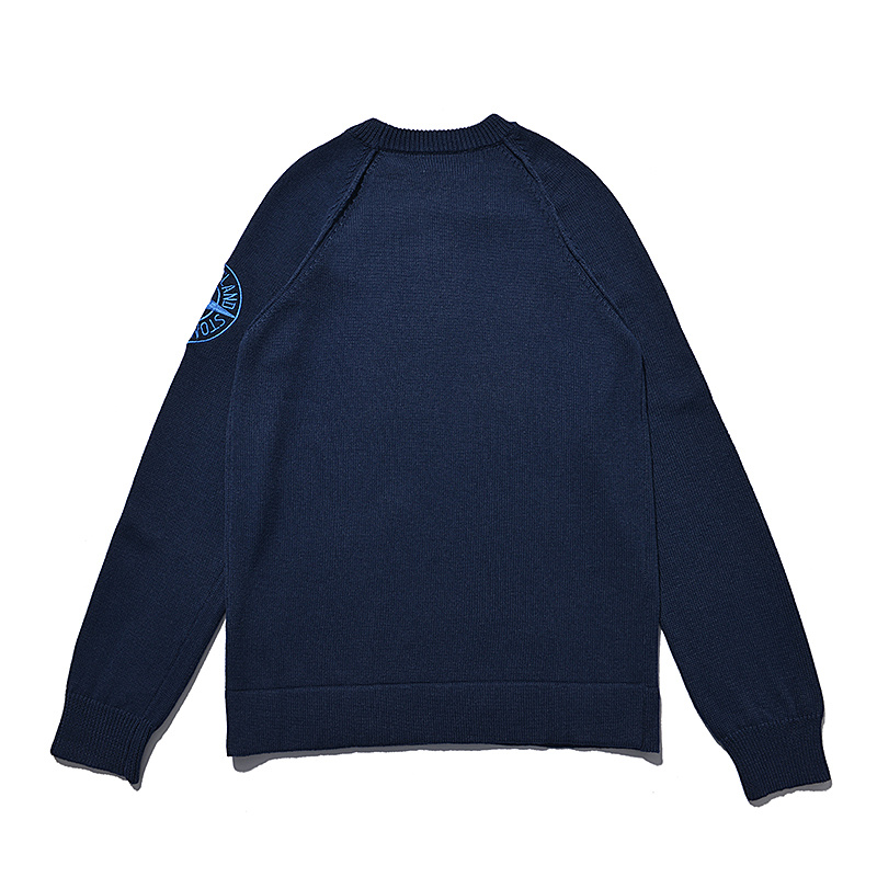 Мягкий тёмно-синий свитер Stone Island с вышитым логотипом на рукаве