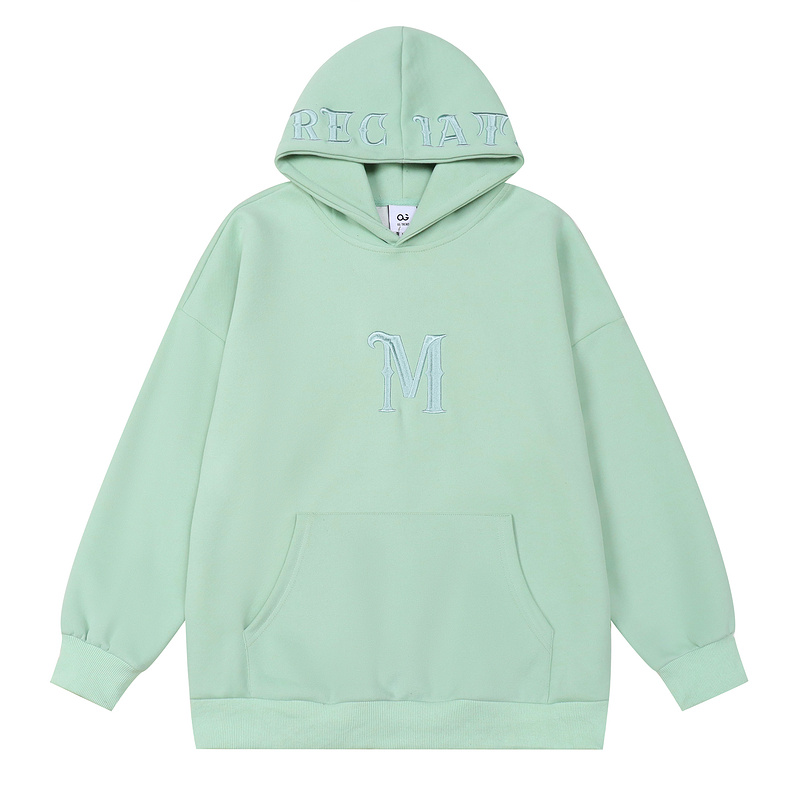 Мятное с вышитой буквой "М" спереди ACQT хлопковое худи