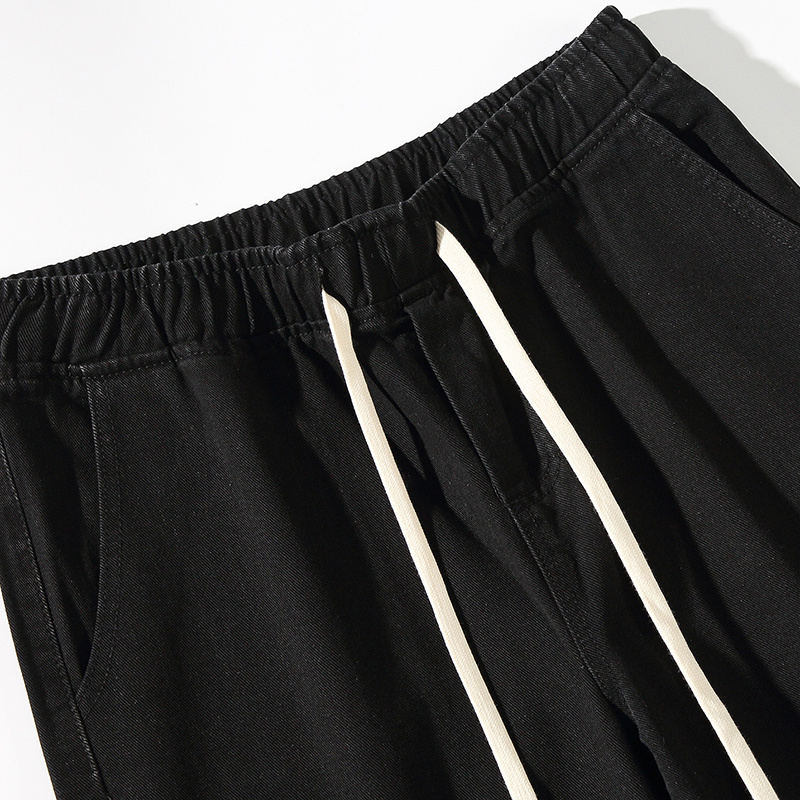 На резинке со шнурком черные джинсы от бренда BYD JEANS
