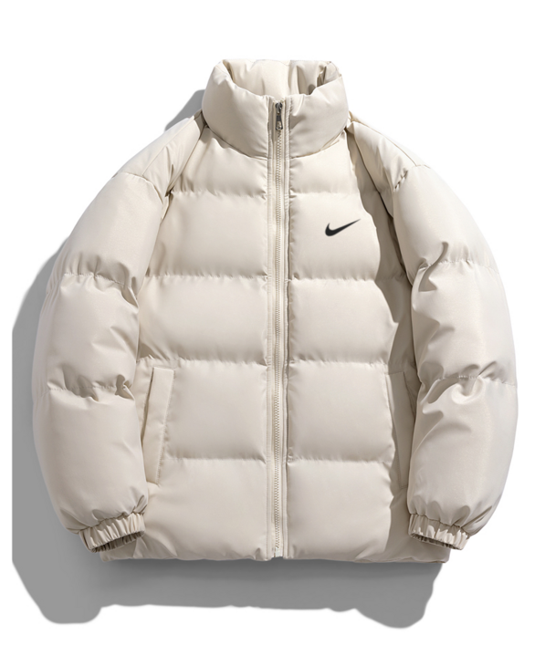 Непромокаемый бежевый пуховик Nike на молнии свободного покроя