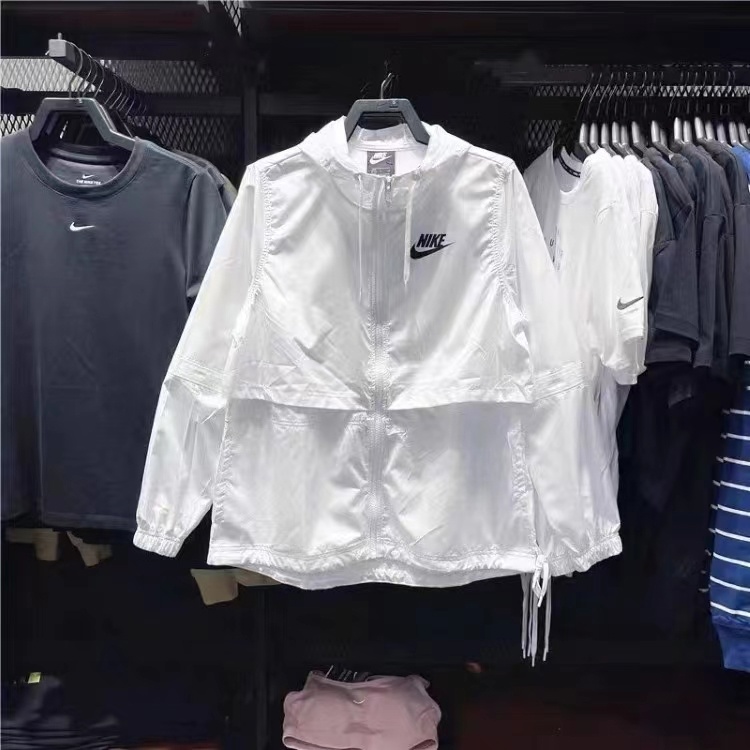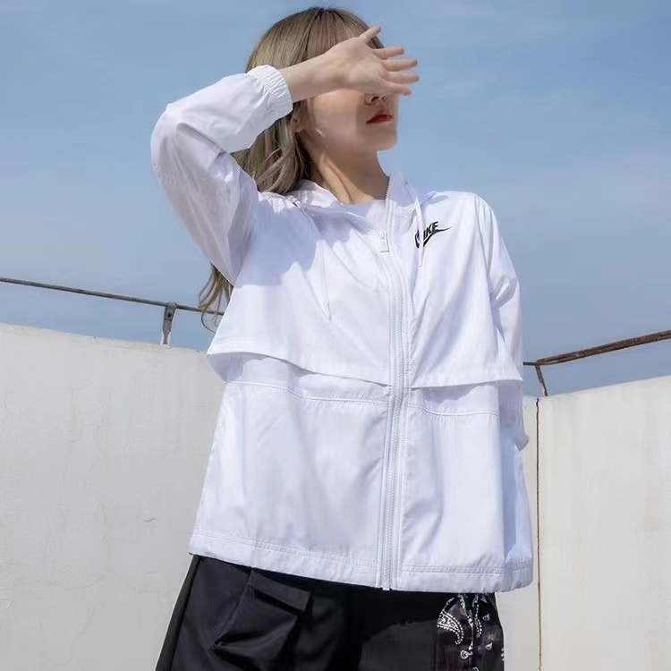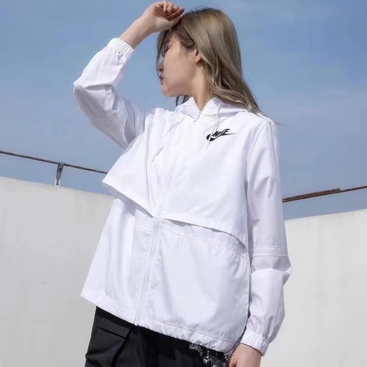 Nike стильная ветровка белого цвета с капюшоном на молнии