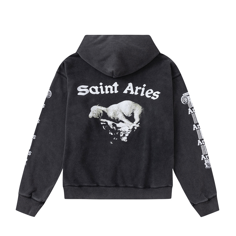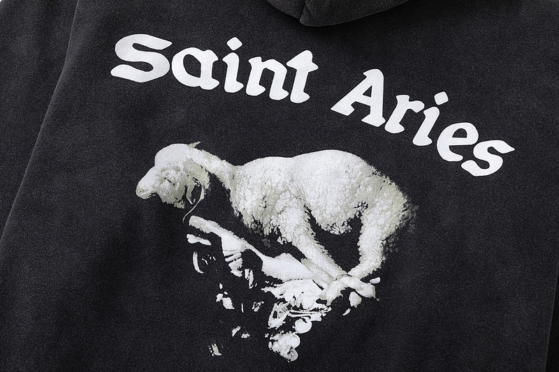 Объёмное чёрное с капюшоном худи Saint Michael и принтом "Овен"