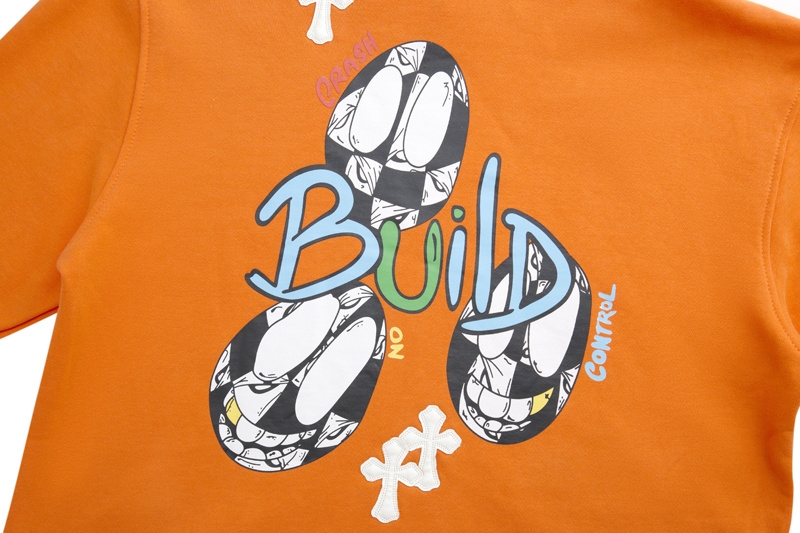 Объёмное оранжевое худи из хлопка от бренда Chrome Hearts