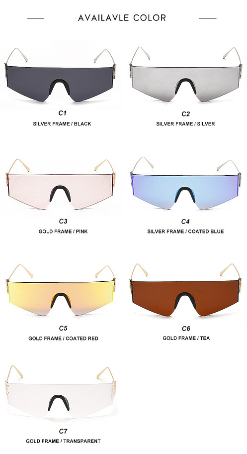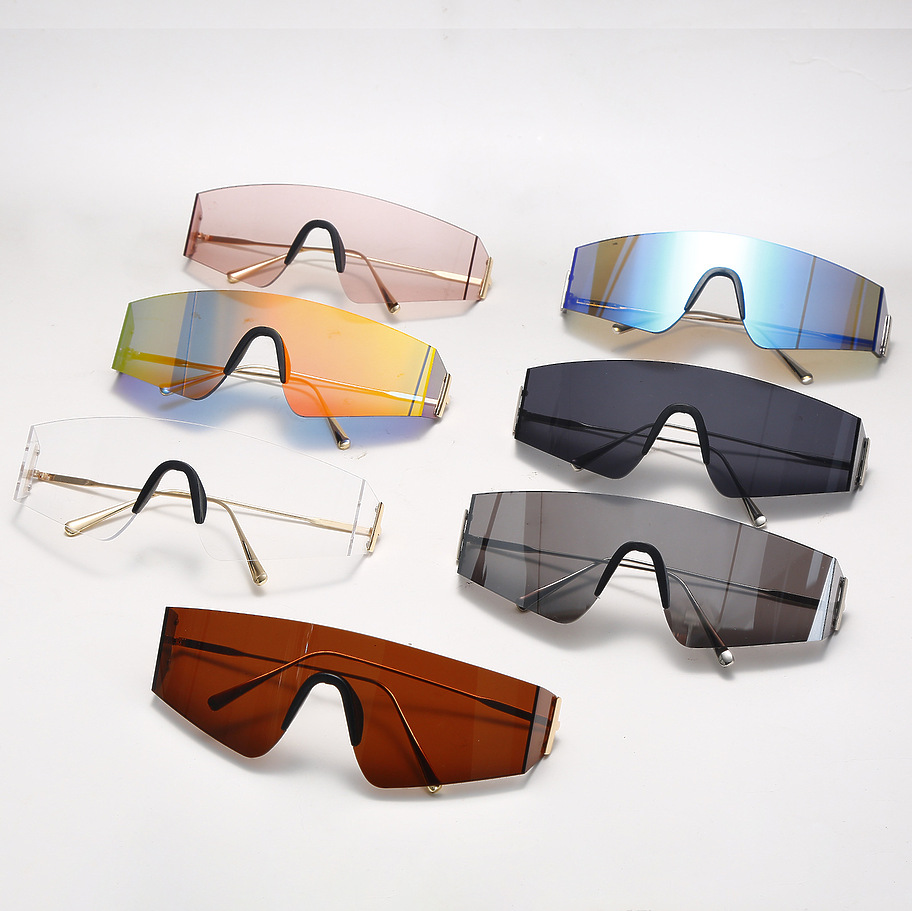 Солнцезащитные очки с цельной безрамочной линзой в разных цветах