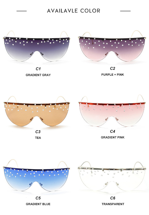 Солнцезащитные очки с большими безрамочными линзами в разных цветах