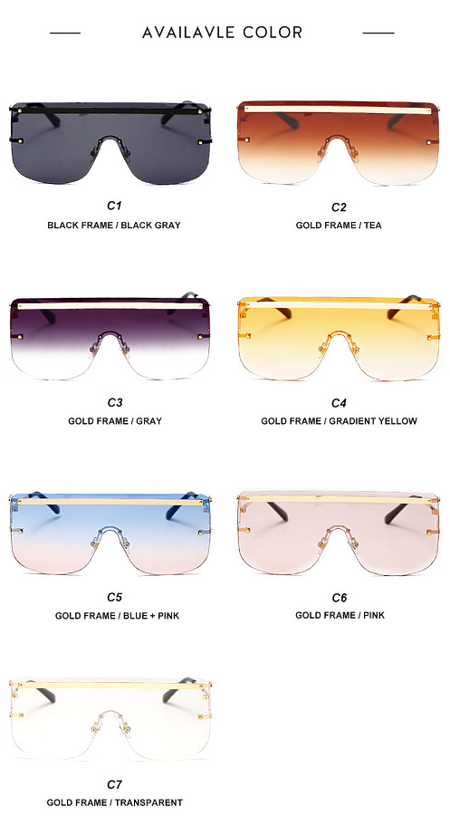 Солнцезащитные очки с цельной безрамочной линзой в разных цветах