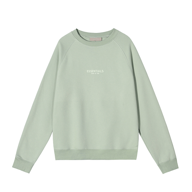 Оливковый свитшот от бренда essentials с фирменным логотипом на груди