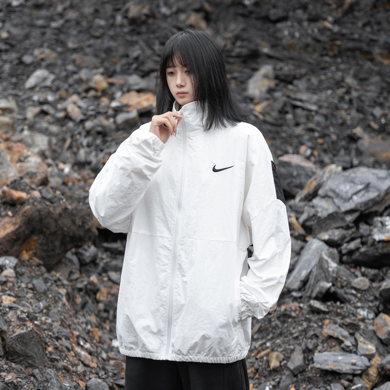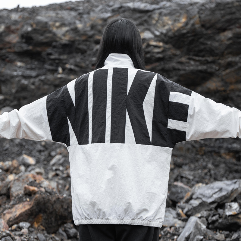Оригинальная ветровка в белом цвете с черной надписью Nike