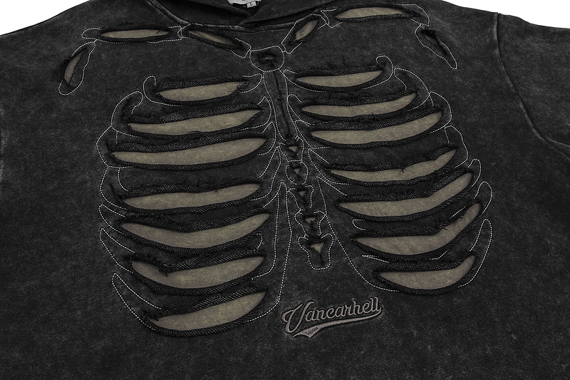 Оригинальное VANCARHELL черное с нашивками в виде костей худи