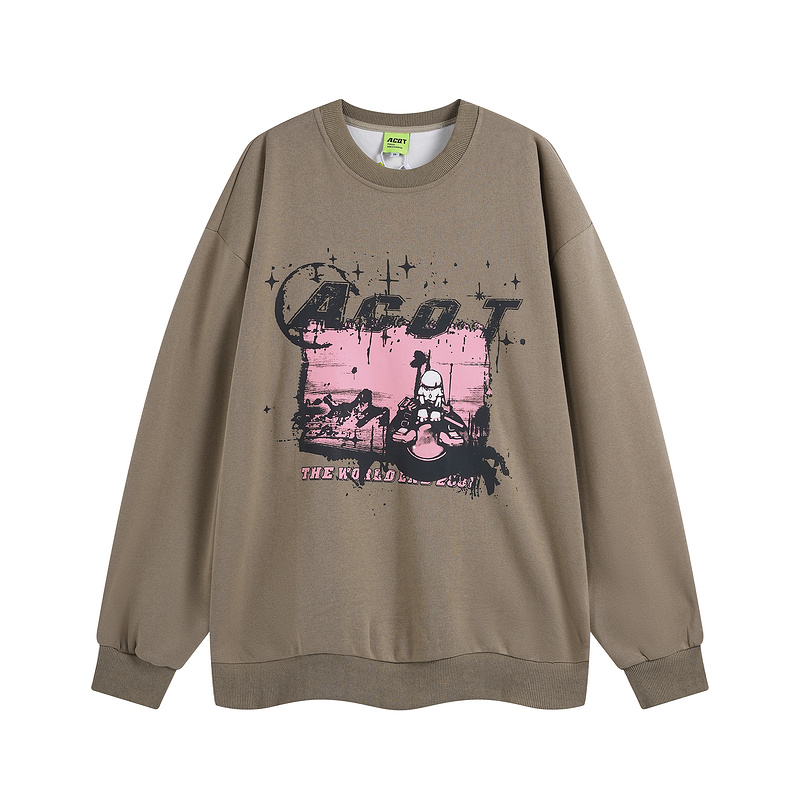 От бренда ACQT свитшот цвета капучино с рисунком "Пейзаж аниме"
