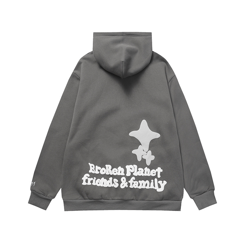 От бренда Broken Planet худи с фирменным рисунком темно-серое