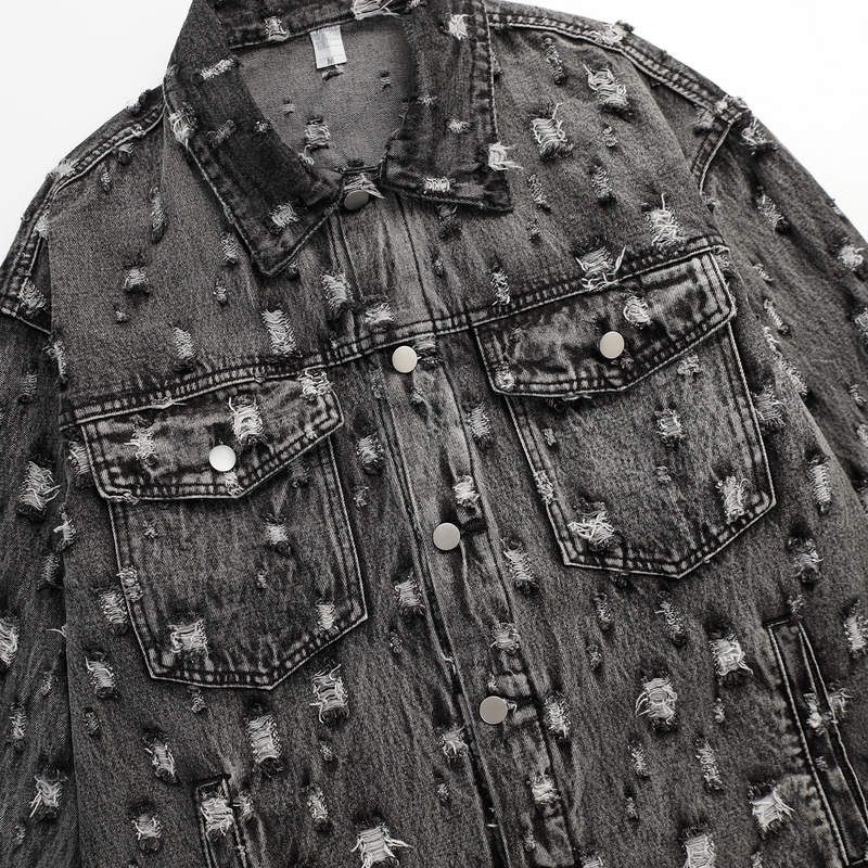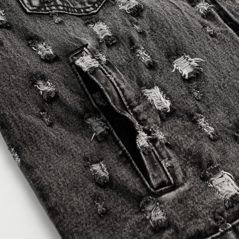 От бренда BYD JEANS в черном цвете джинсовка с потертостями