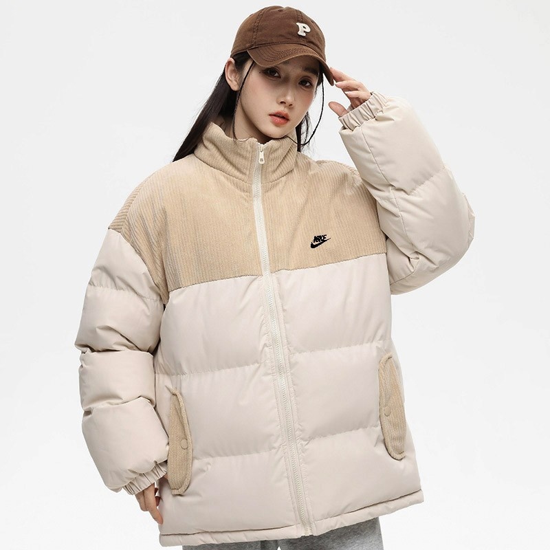 От бренда Nike бежевый с воротником и спущенными рукавами пуховик