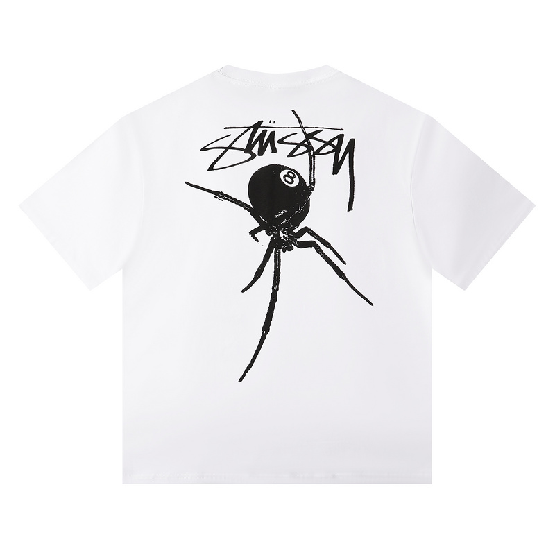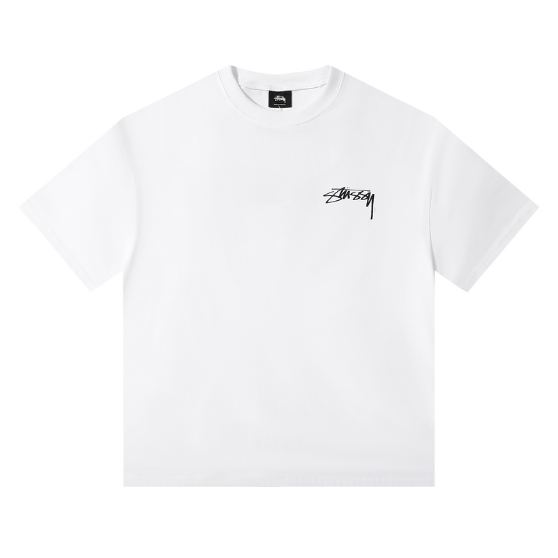 От бренда Stussy белая универсальная футболка с принтом на спине