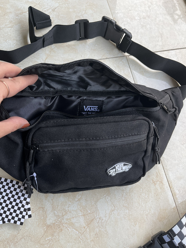 От бренда Vans сумка-бананка чёрная с тремя отделениями на молнии