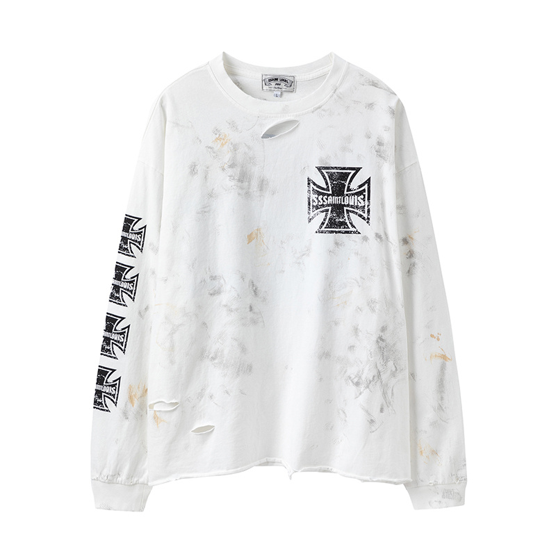 Оверсайз белый лонгслив Sssaint Louis рваный с необработанным краем