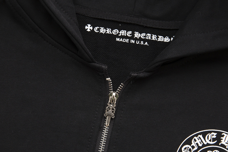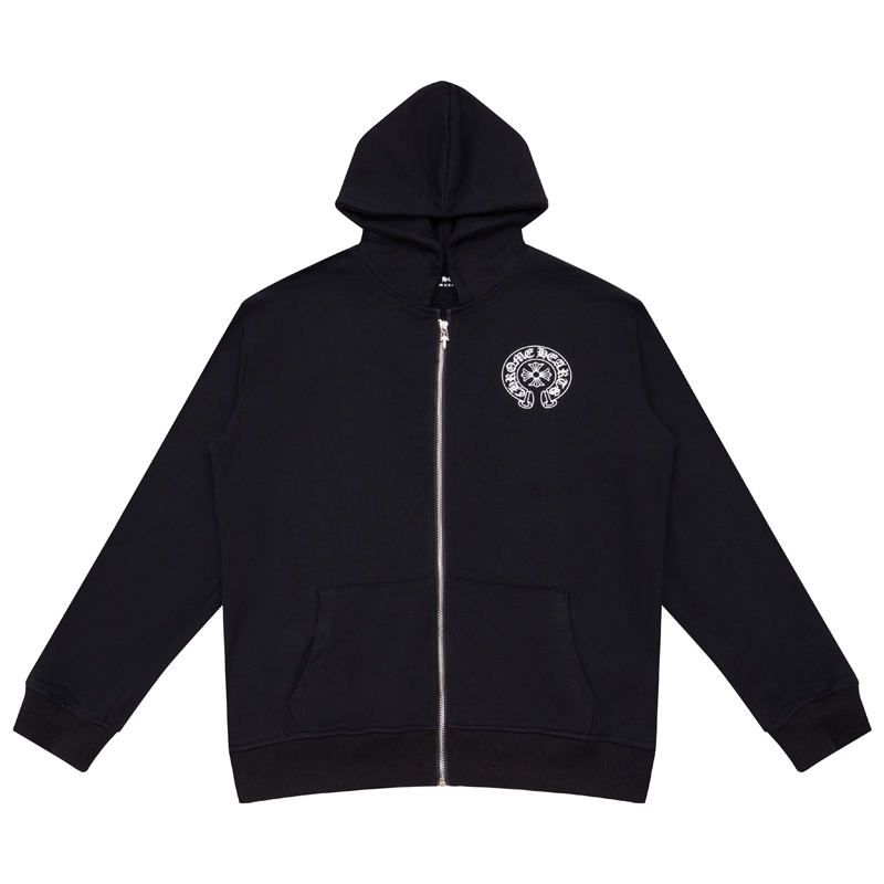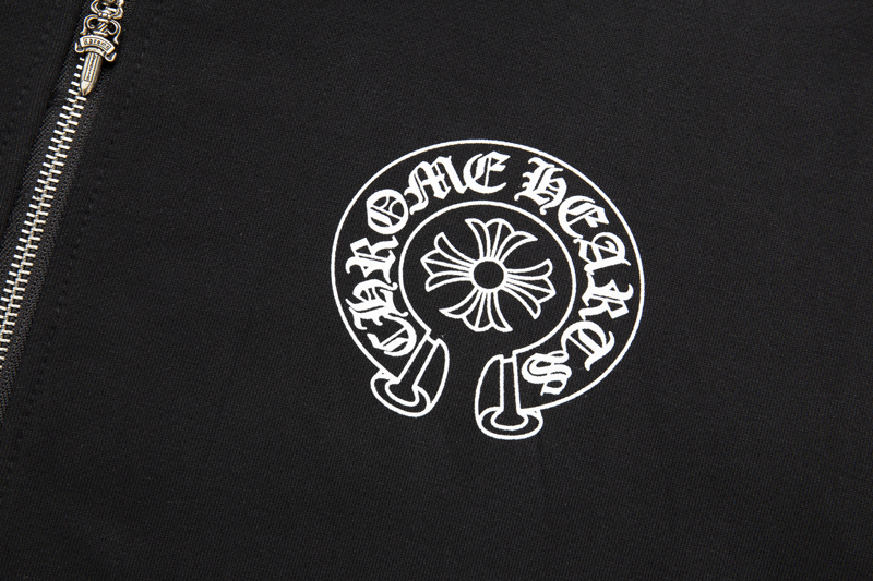 Оверсайз Chrome Hearts зип худи чёрное с капюшоном и принтом на спине