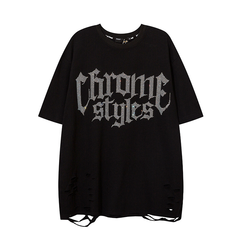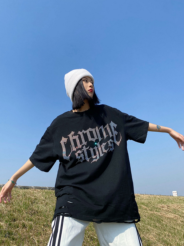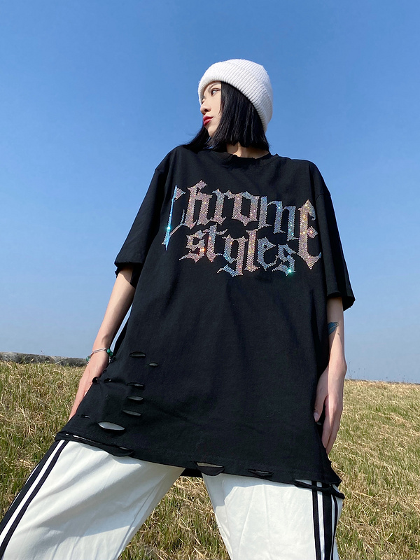 Оверсайз футболка KIRIN STRANGE черная со стразами