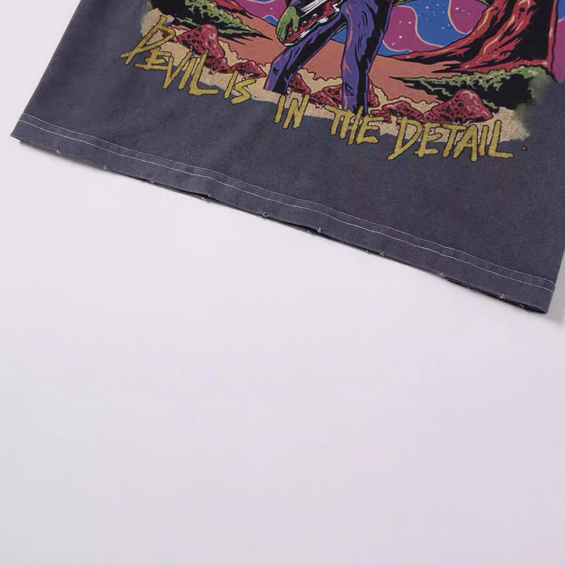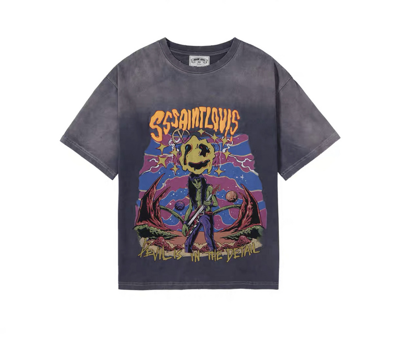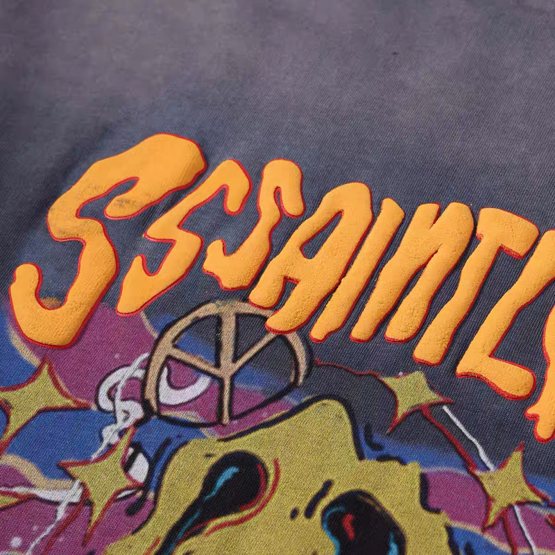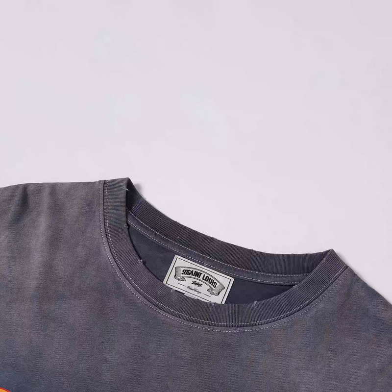 Оверсайз тёмно-синяя потертая футболка Sssaint Louis с принтом