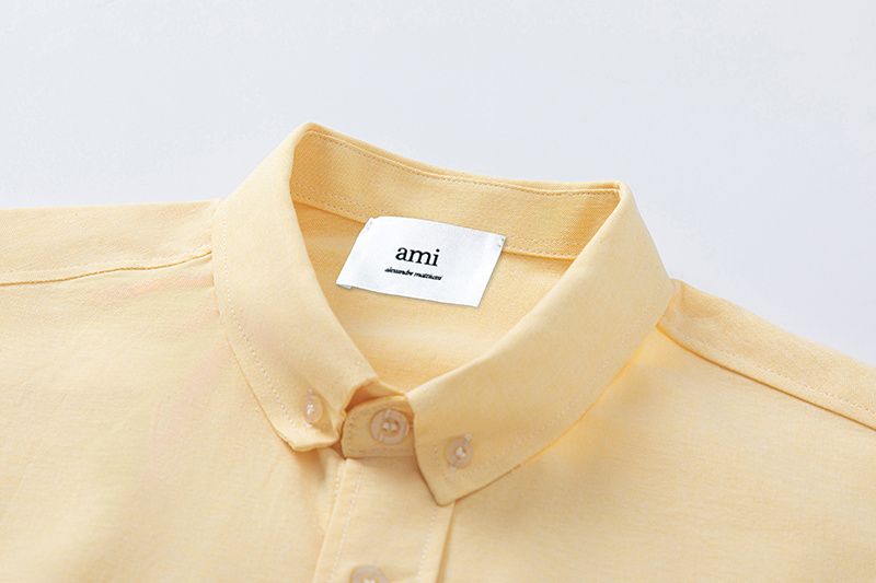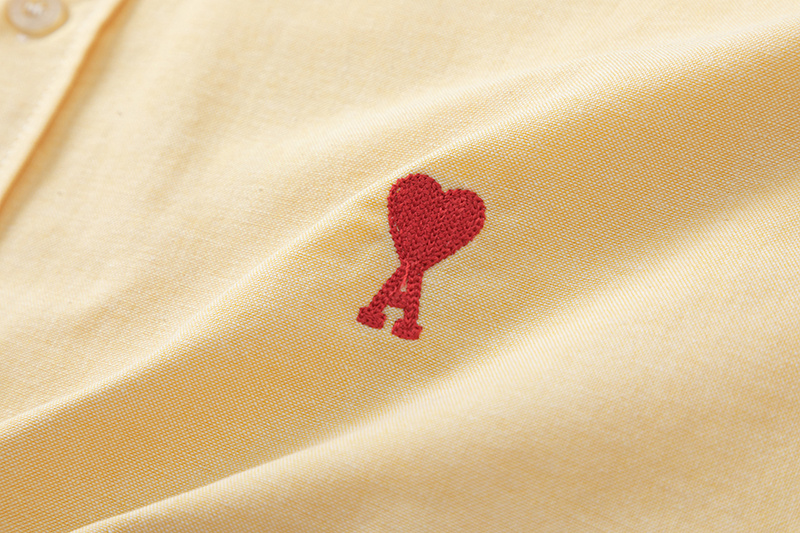 Оверсайз желтая с вышитым лого AMI рубашка с отложным воротником