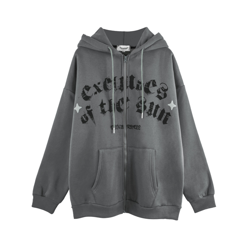 Оверсайз зип худи VANCARHELL с рисунком "Астрология" серое