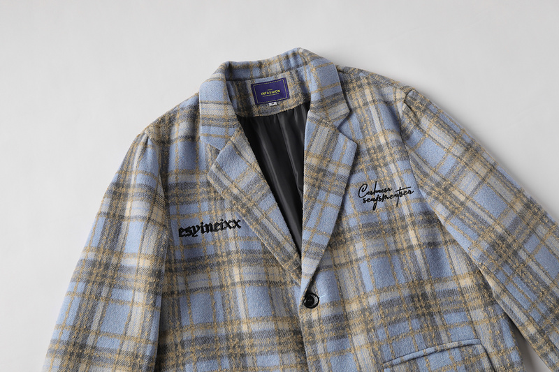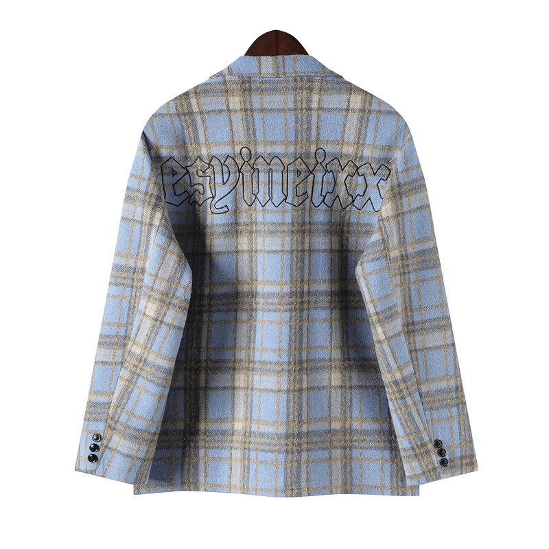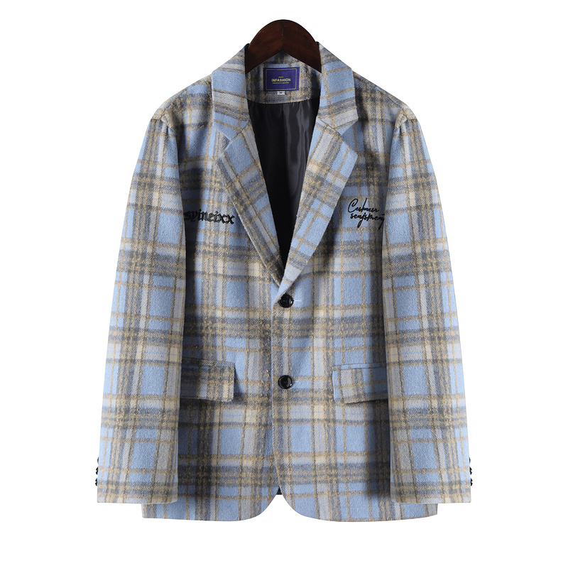 Пиджак голубого цвета в клетку Classic с вышитыми надписями