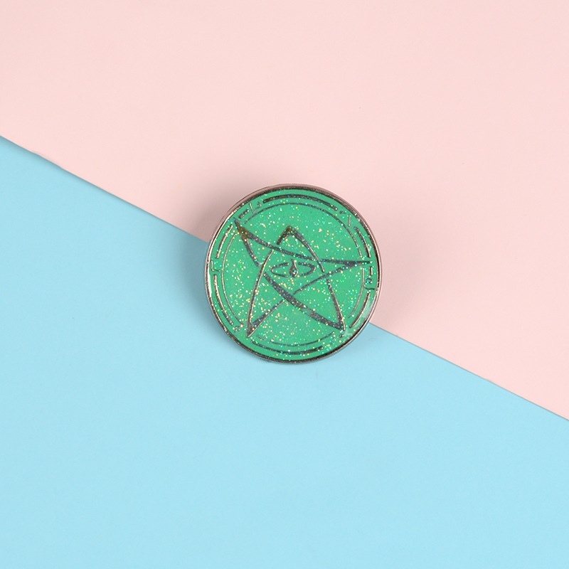 На зеленого цвета фоне силуэт звезды качественный пин-значок
