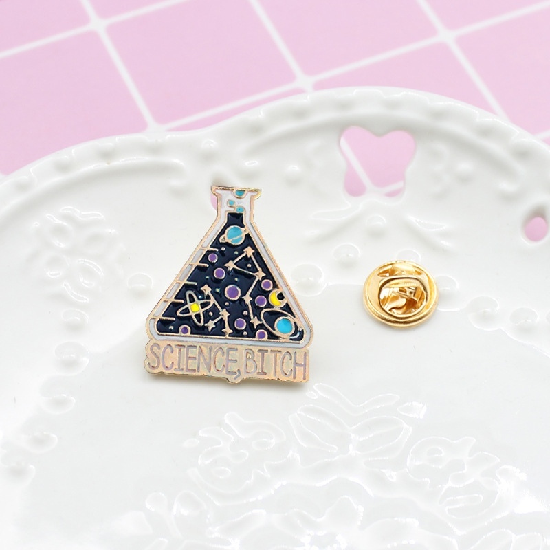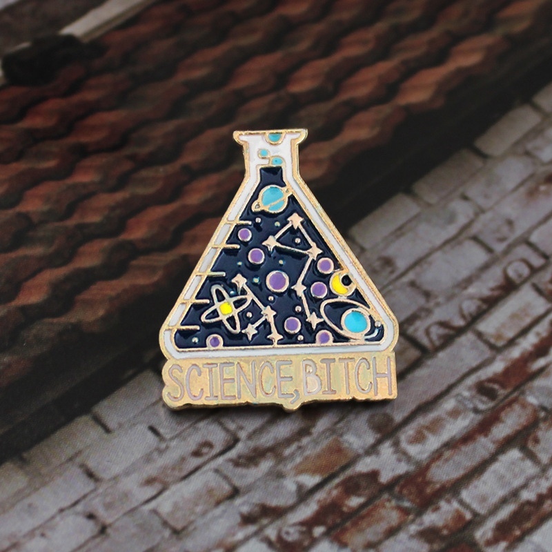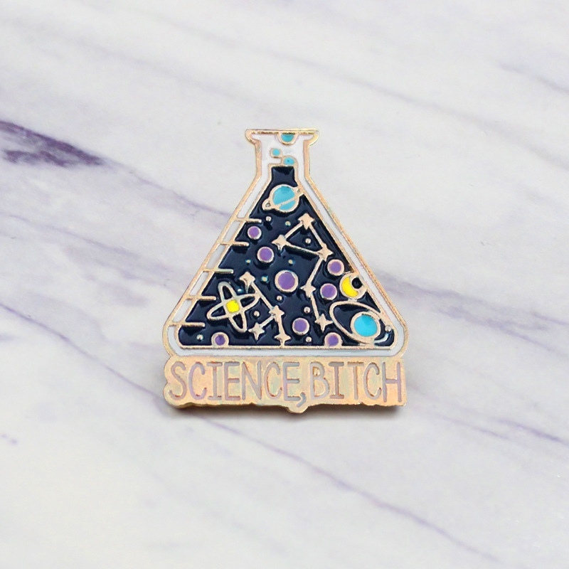 Синего цвета колба с разными элементами пин для ученых